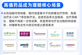 具体而言,呈现三大特点:一是理赔需求呈现长期化与多场景特征。肿瘤类疾病占比突出,其治疗过程中往往涉及住院、门诊及院外用药等多医疗场景,理赔链路更长、节点更多,对理赔衔接能力和直付服务提出更高要求;二是高值药品成为理赔核心场景。从药品赔付结构来看,赔付高度集中于抗肿瘤治疗药物、免疫治疗及CAR-T等创新疗法,这类药品单次金额高、治疗周期长,使得理赔不再是一次性结算,而是贯穿治疗全过程的持续服务,对理赔的专业性和稳定性提出更高要求;三是原研药与外购药需求显著增加。从理赔结构看,原研药及外购药的理赔需求持续上升,成为高值药品理赔中的重要组成部分。这一变化反映出患者对治疗效果与用药连续性的更高关注,也对药品理赔的合规判断、用药路径识别与直付能力提出更高要求。