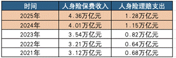 图2:2021-2025年人身险保费收入及理赔支出数据,根据国家金融监管总局统计