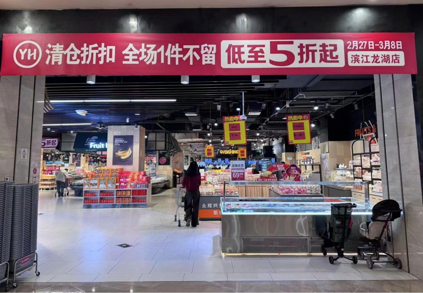 2026年3月初,杭州滨江天街永辉超市清仓准备歇业。摄影:杨立赟