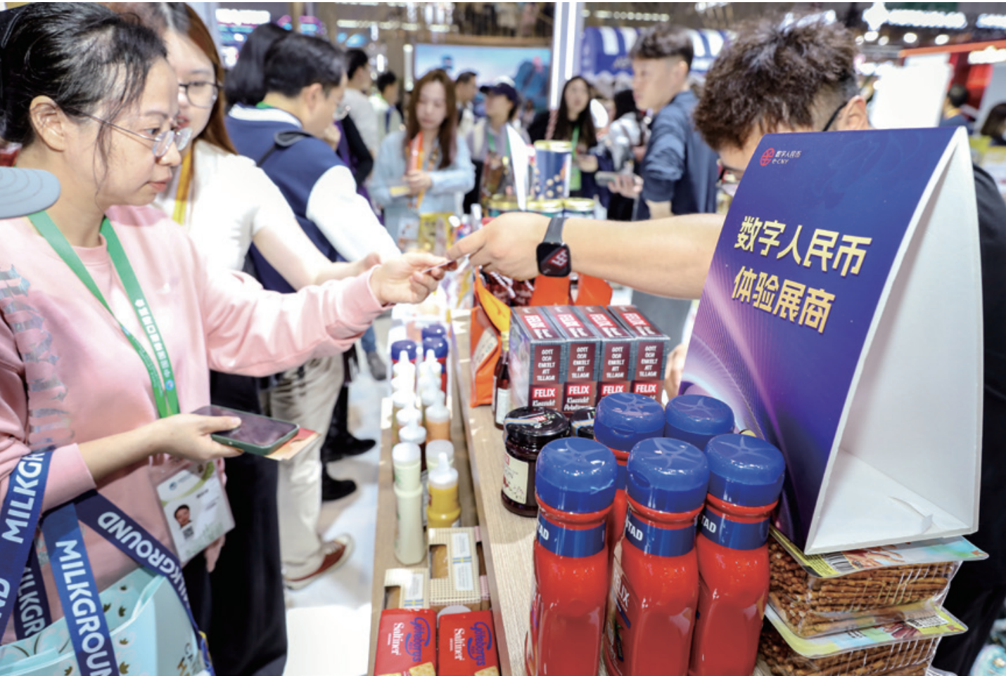 2025年11月8日,第八届进博会上的数字人民币体验展商。图/视觉中国